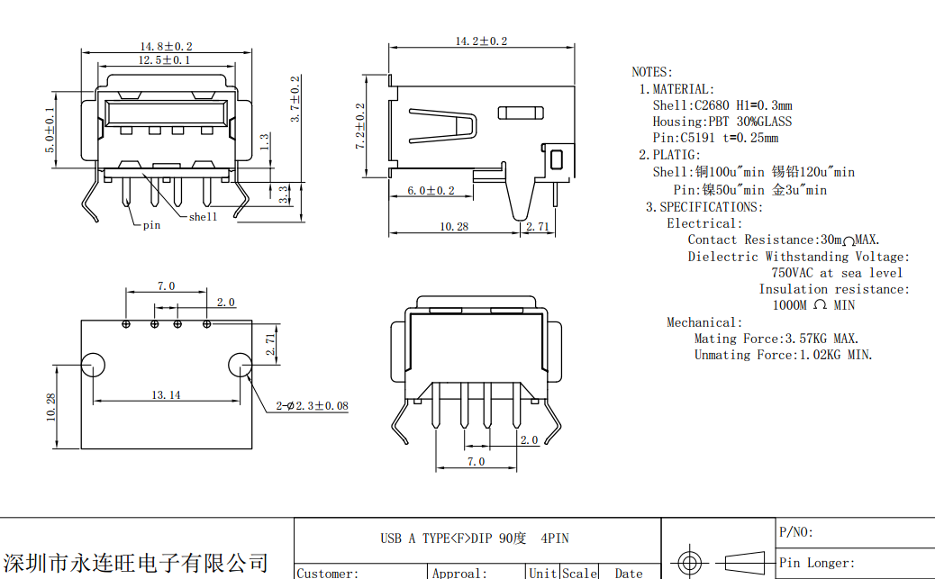 USB A/F A/M 直腳USB 貼片USB,USB工廠,USB廠家-永連旺連接器</span>" />